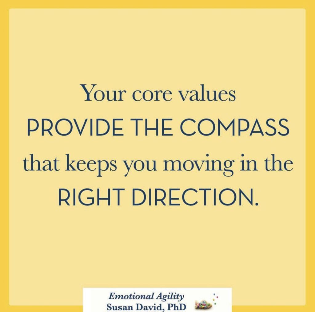 I recently read Susan David’s “Emotional Agility: Get Unstuck, Embrace Change, and Thrive in Work and Life” and found myself thunderstruck by what she says about how our emotions can lead us closer to or away from our values and it really got me thinking. How can we lean into our emotions in such a way as to move us closer to our values?