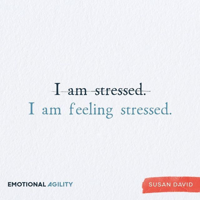 Susan David, PhD., author of “Emotional Agility: Get Unstuck, Embrace Change and Thrive in Work and Life,” encourages us to consider creating space between our thoughts and feelings by using words to do so. For example, instead of thinking or saying, “I’m so stressed.” We instead can think or say, “I notice that I am feeling stressed.” The latter statement reminds us that “stressed” is just a feeling that likely will pass at some point.