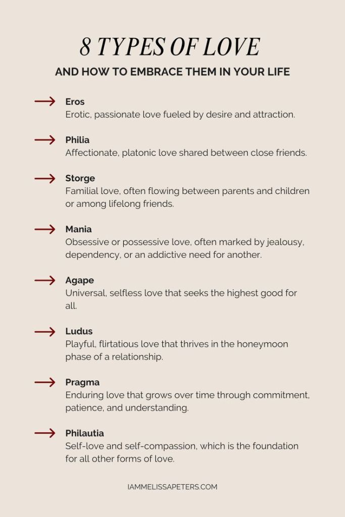 What is love, anyway? Romantic love is just one type of love. While romantic love, or Eros, is perhaps the best known type of love, there are many others. There is the love of friendship, and the love of family. There is the love of community and of people in general. And there is the type of love that grows over time.